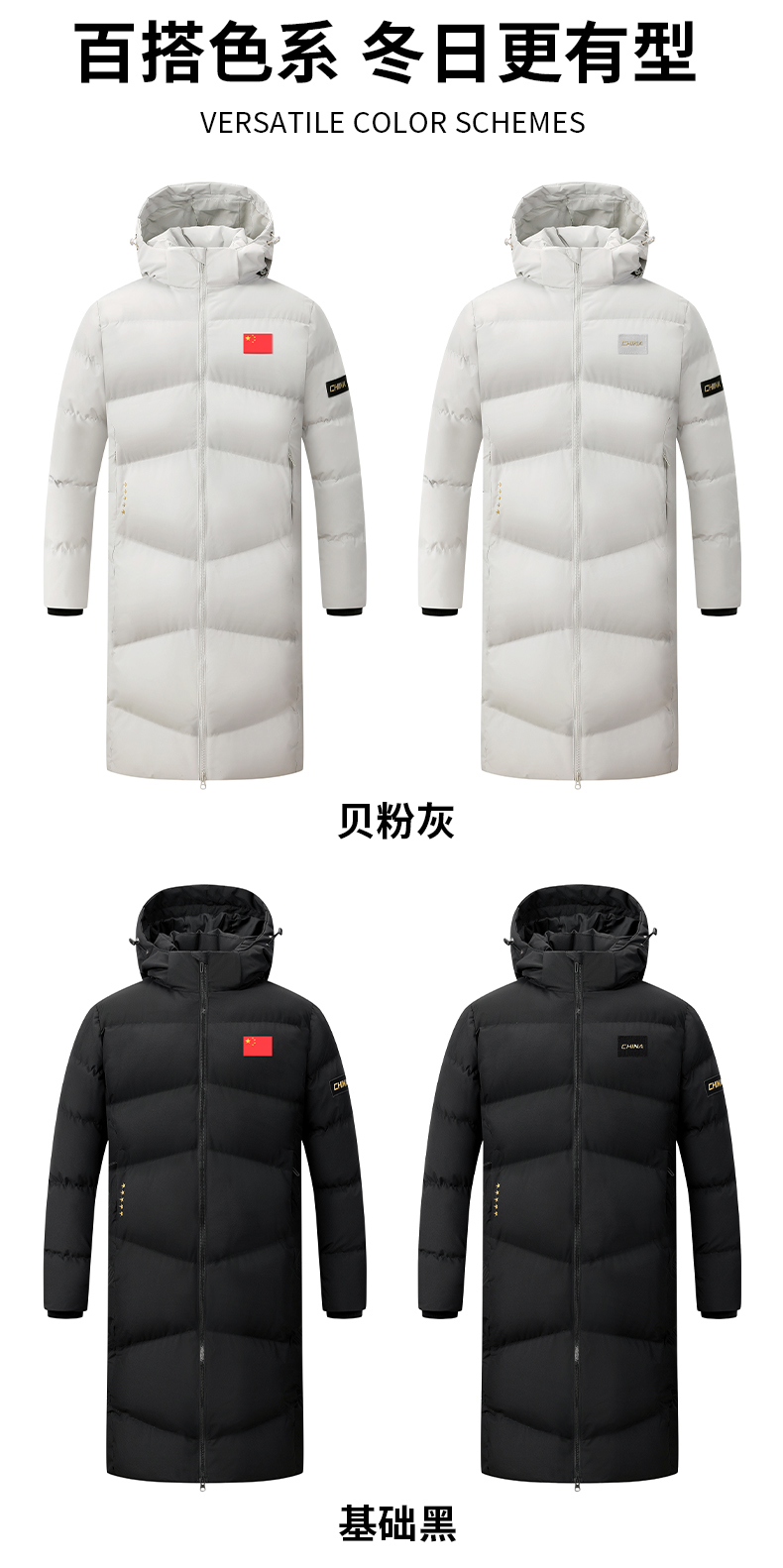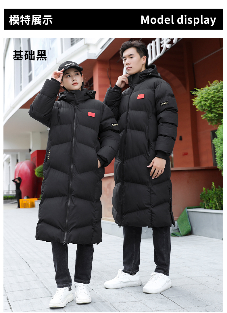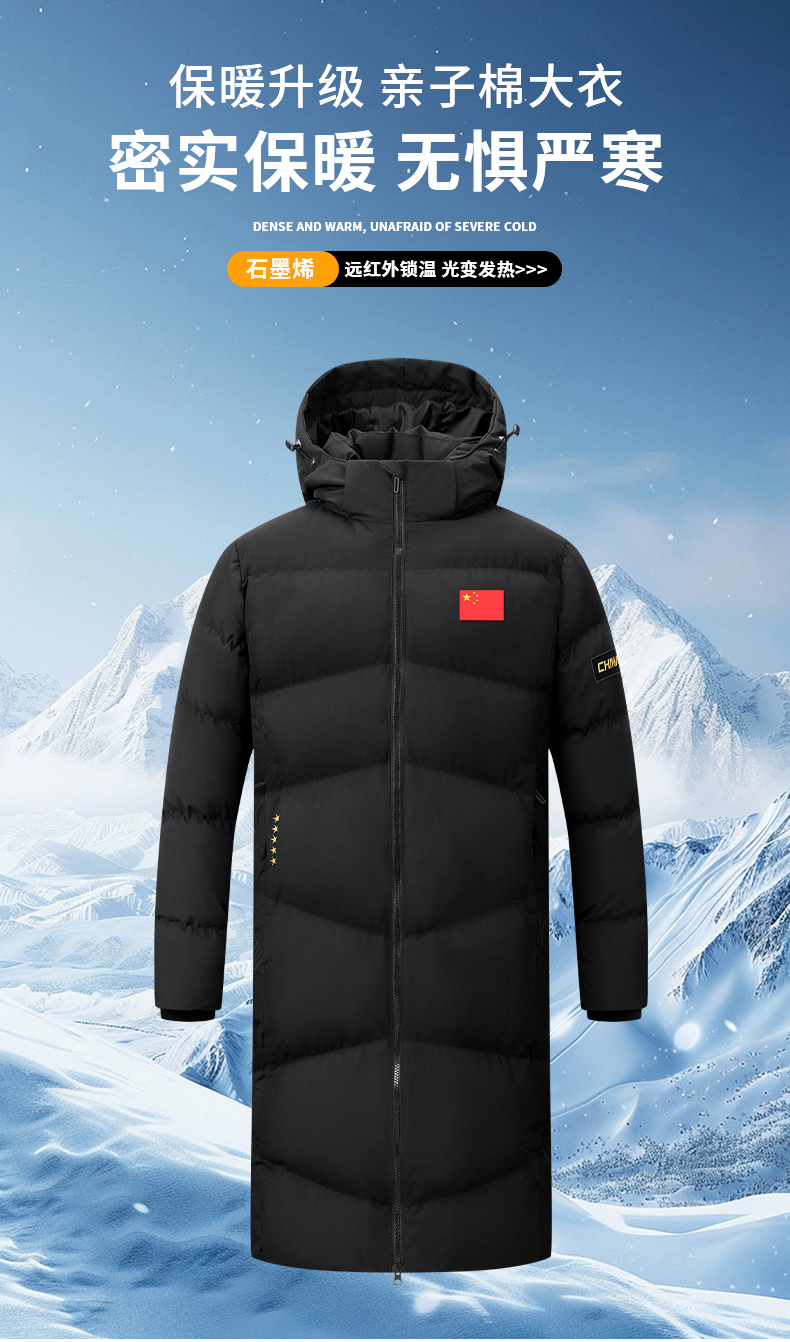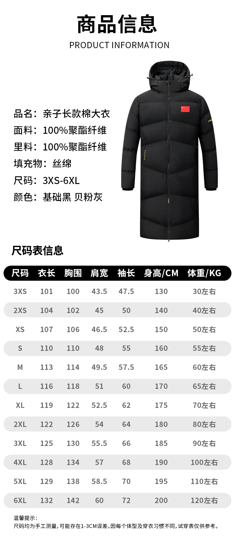 0375亲子情侣长款大衣 100聚酯纤维 填充物丝绵 贝粉灰/基础黑 3XS-6XL