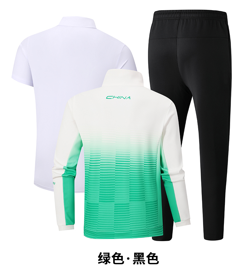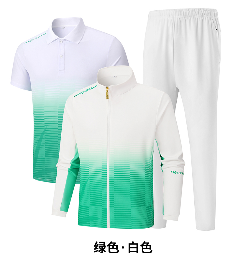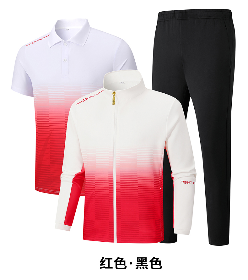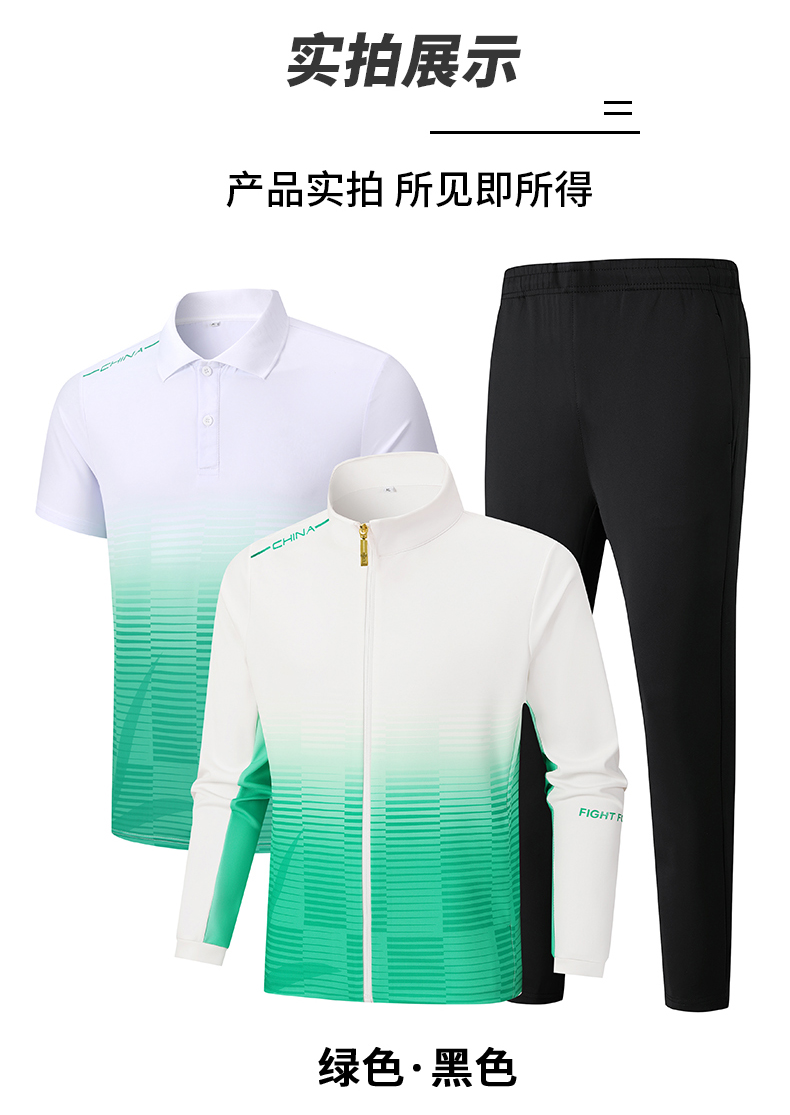 8911亲子开衫休闲运动两、三件套装 开衫/长裤 罗马酷丝棉 短袖95聚酯纤维5氨纶 上衣绿/红 长裤黑/白/红 120-7XL