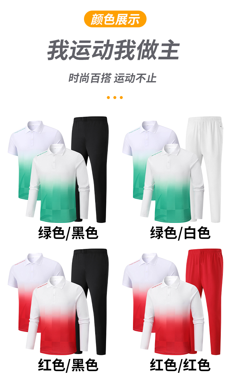 8913亲子POLO衫休闲运动套装 长裤罗马酷丝棉 短袖95聚酯纤维5氨纶 长袖92聚酯纤维8氨纶 上衣绿/红 长裤黑/白/红 120-7XL