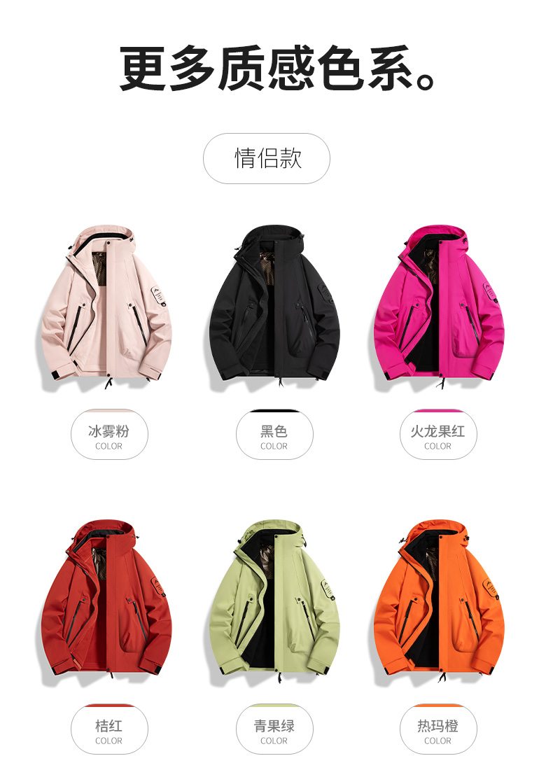2518冲锋衣 100聚酯纤维 冰雾粉/黑/火龙果红/桔红/青果绿/热玛橙/象牙白/荧光绿/柚黄/紫色 XS-4XL