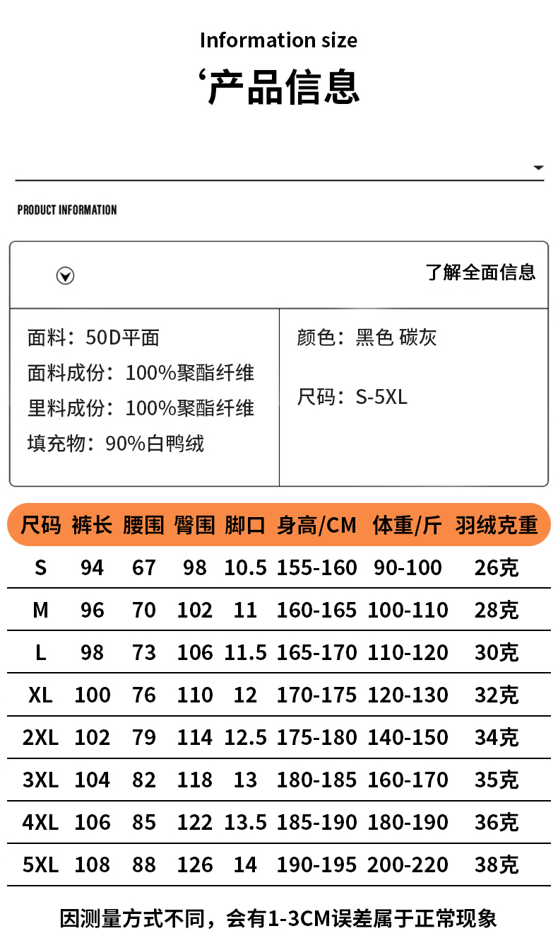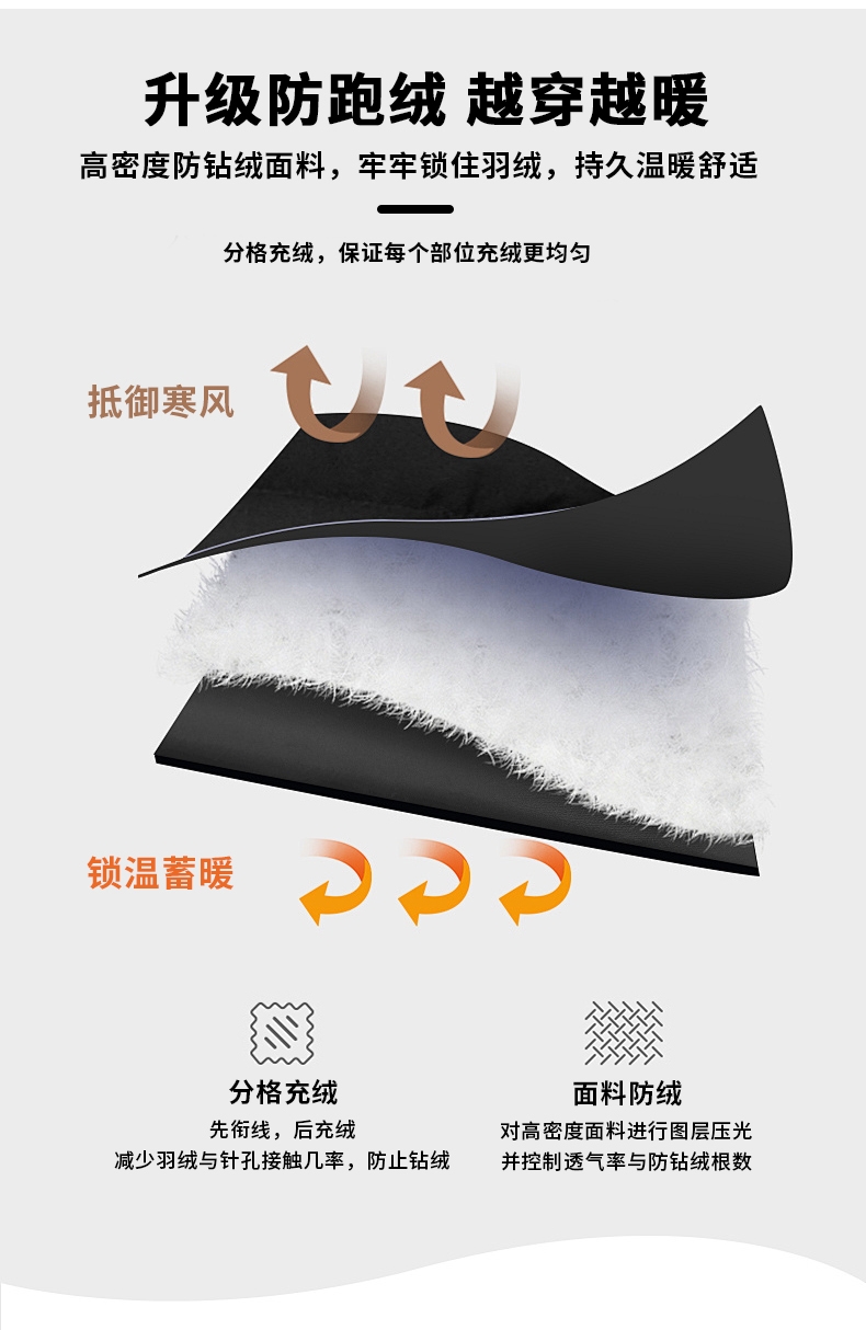Y2688羽绒款 50D平面 面料 面料100聚酯纤维 里料100聚酯纤维 填充物:90白鸭绒 黑/碳灰 S-5XL