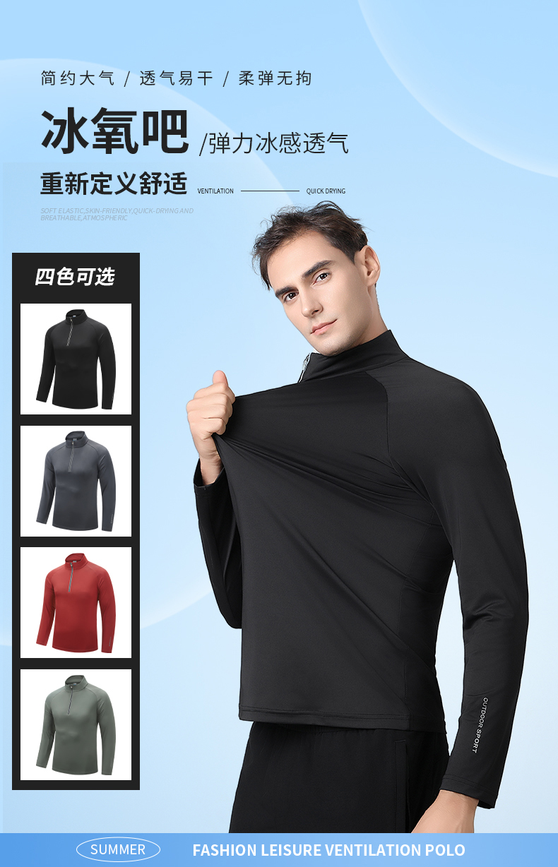 24169冰丝长袖T恤 87聚酯纤维13氨纶 黑/灰/绿/红 L-5XL