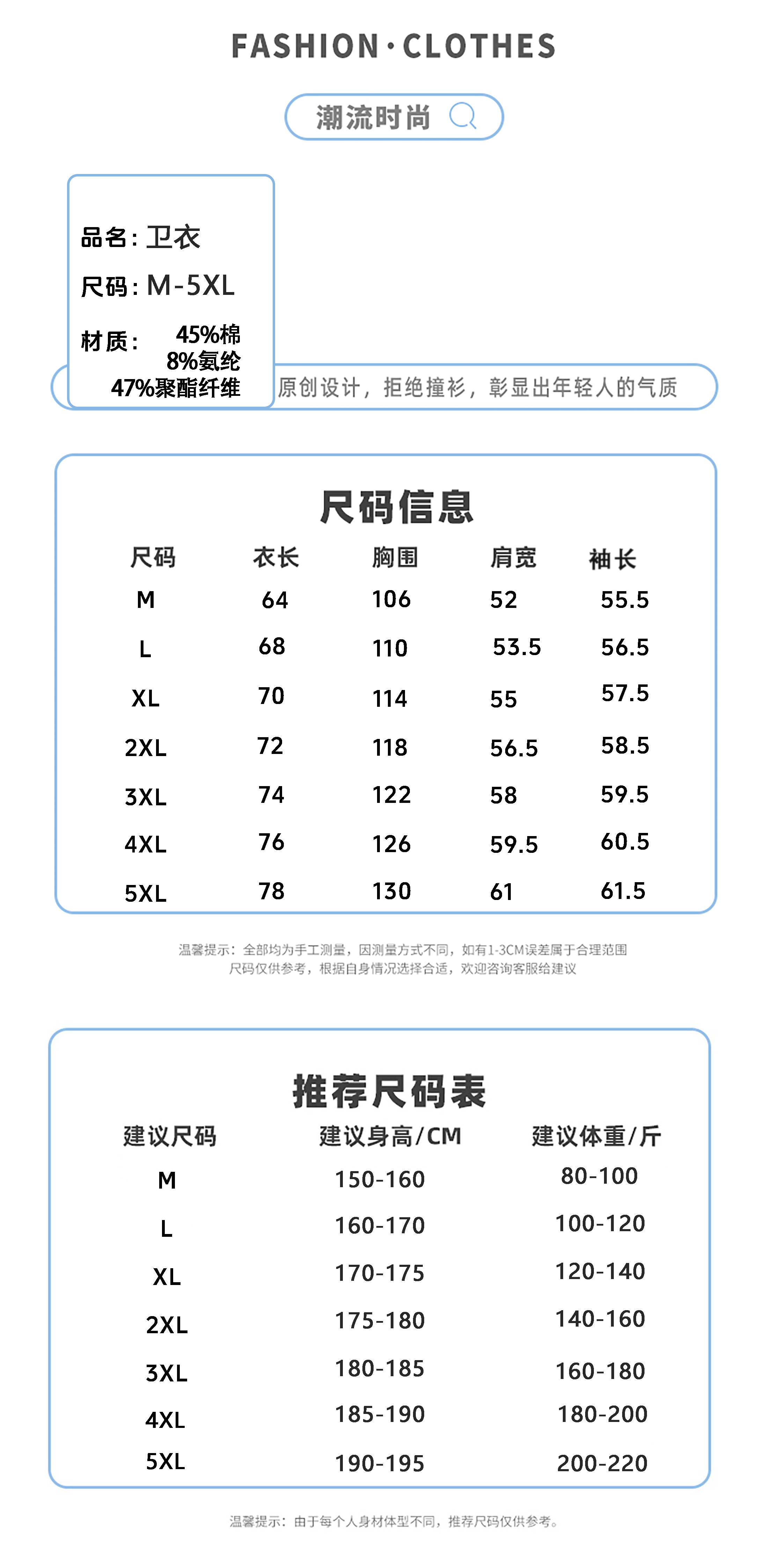 CX3308卫衣 45棉 8氨纶 47聚酯纤维 白/黑/灰 M-5XL