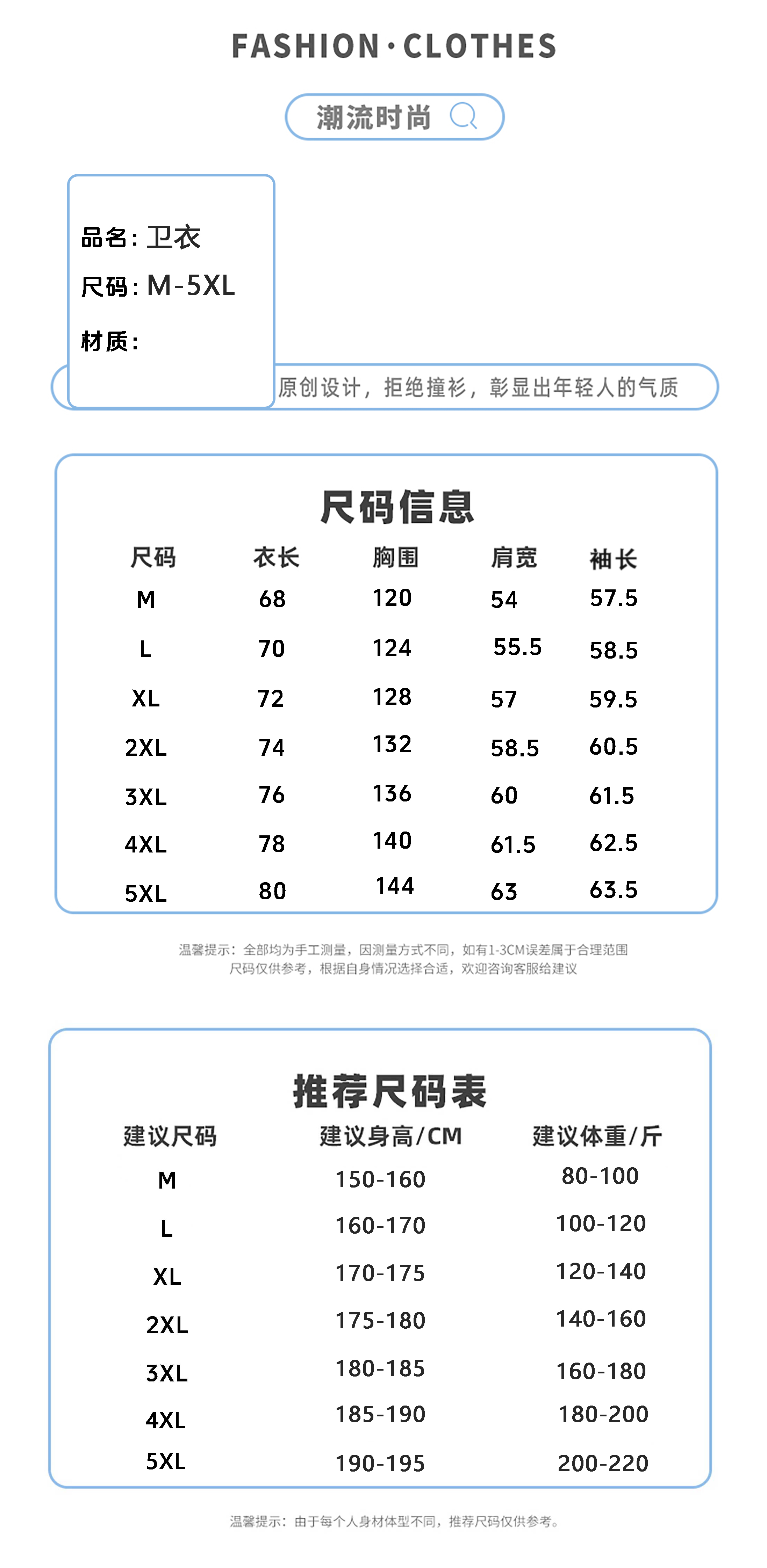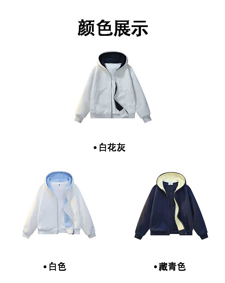 WY5816连帽卫衣 45棉 8氨纶 47聚酯纤维 白花灰/白/藏青/黑/麻灰 M-5XL