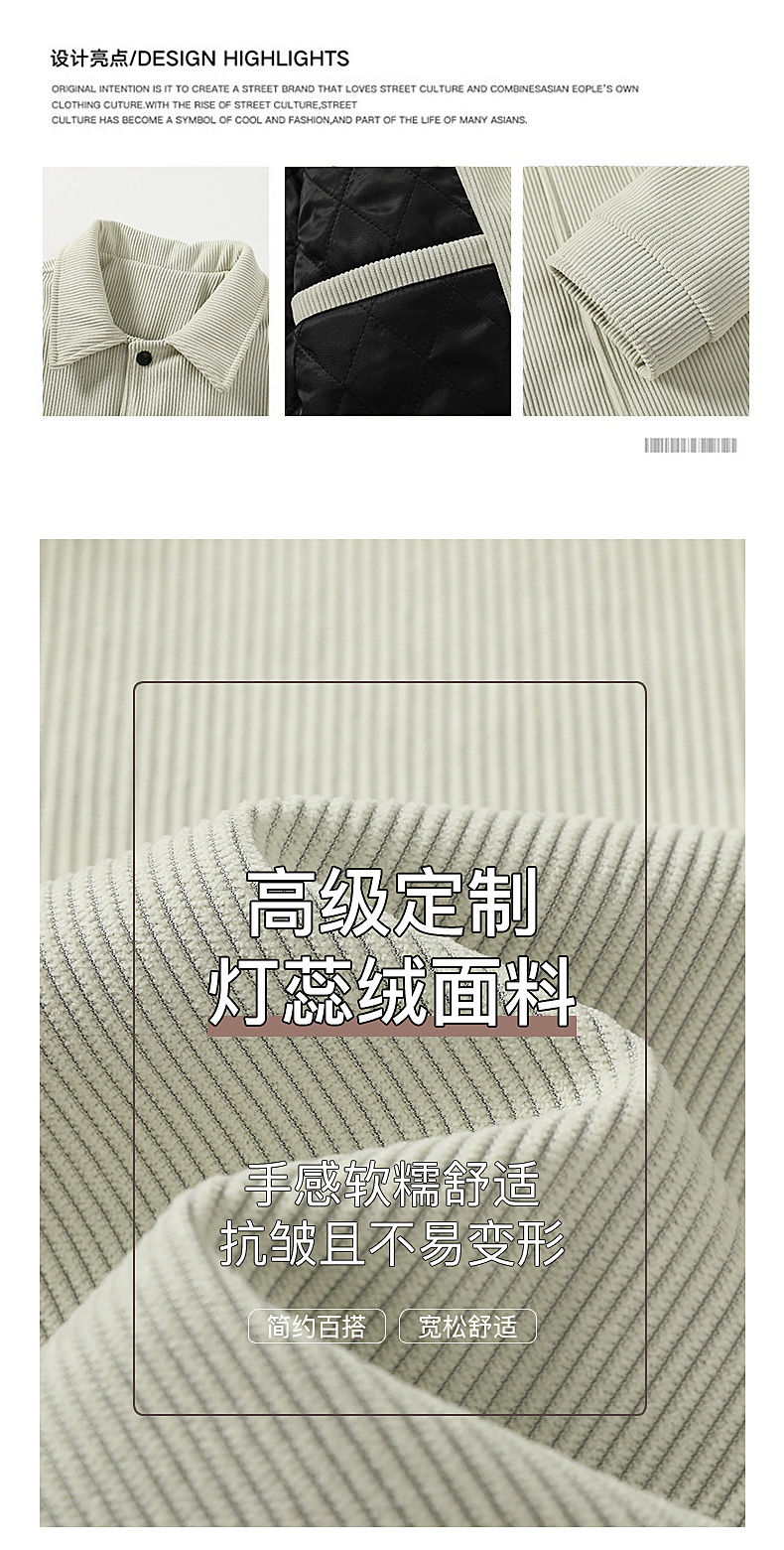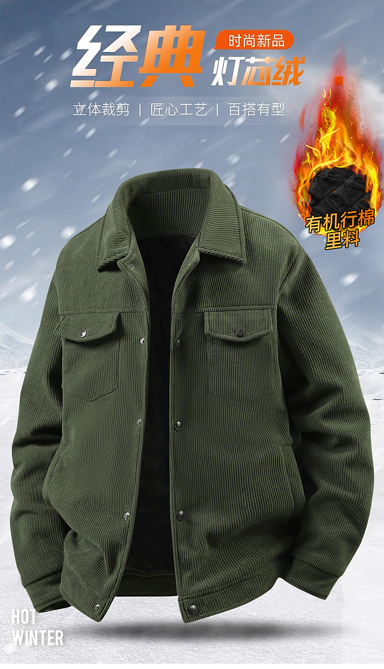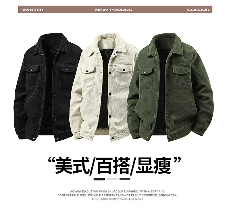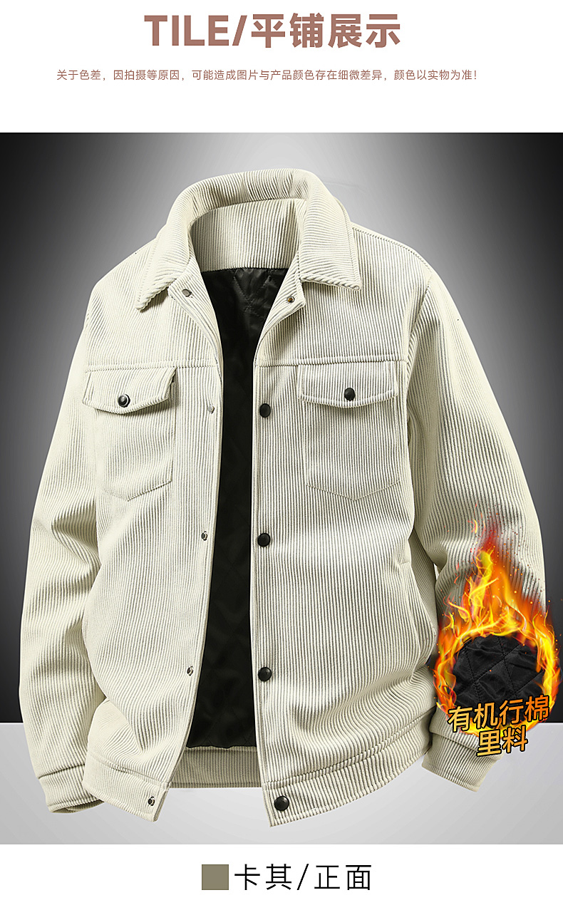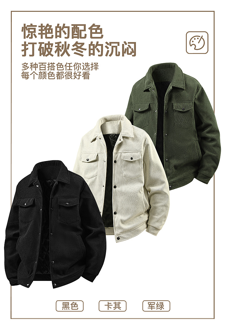 555灯芯绒休闲靓仔夹克 100聚酯纤维 军绿/卡其/黑 M-8XL