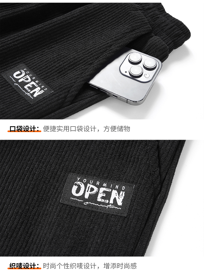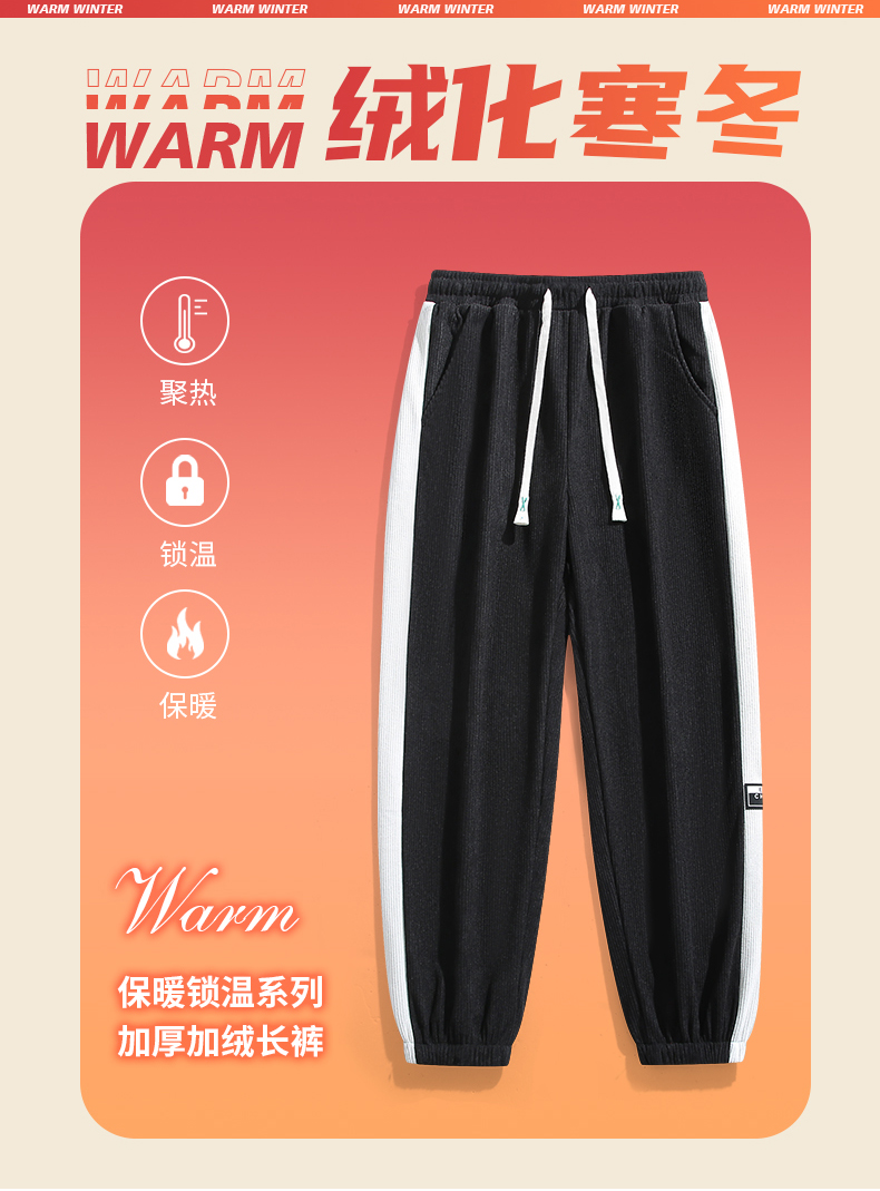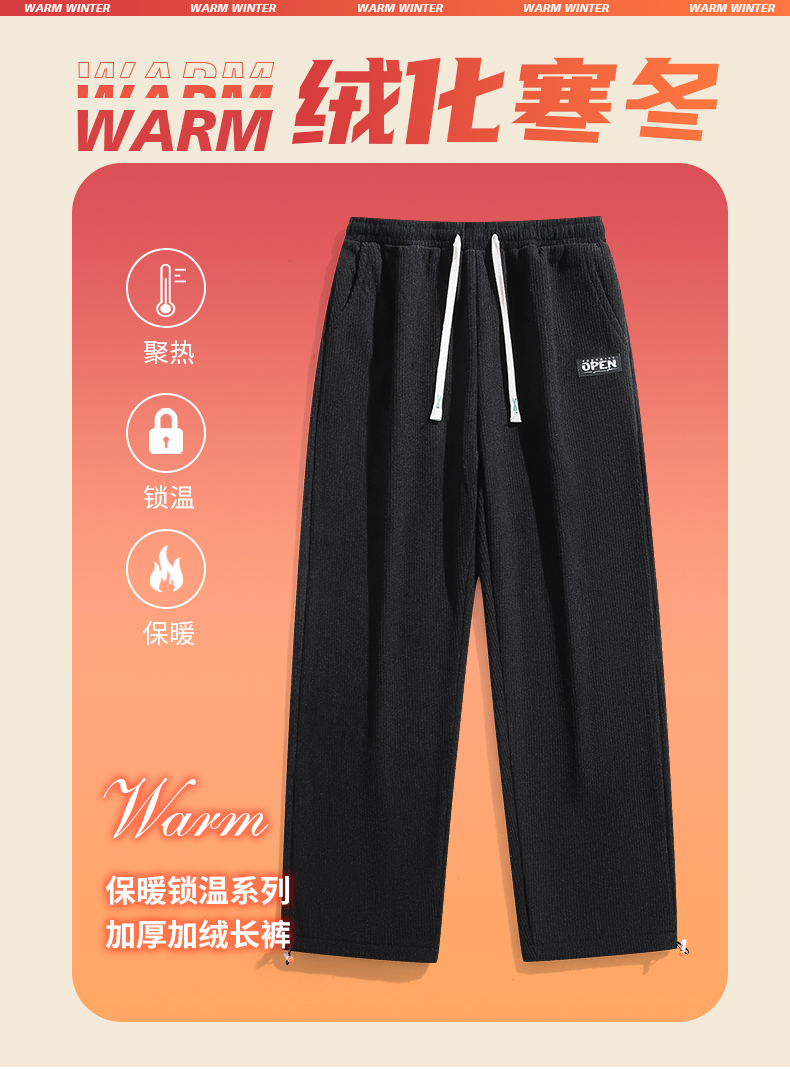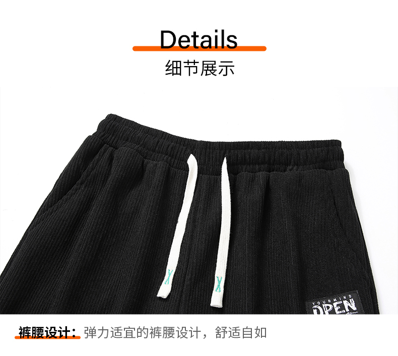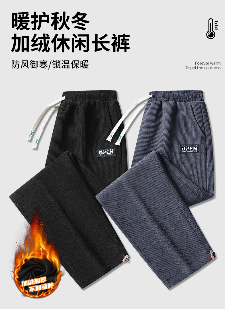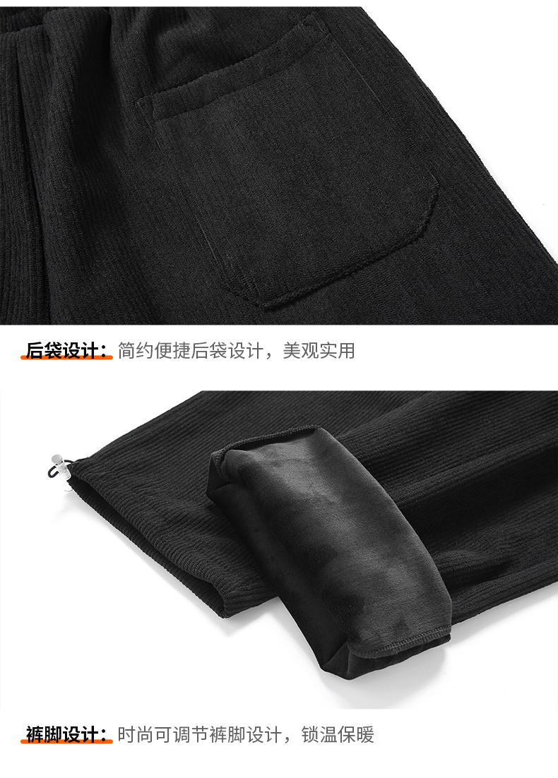 6301/6302灯芯绒加绒休闲裤 100聚酯纤维 黑/灰 M-7XL