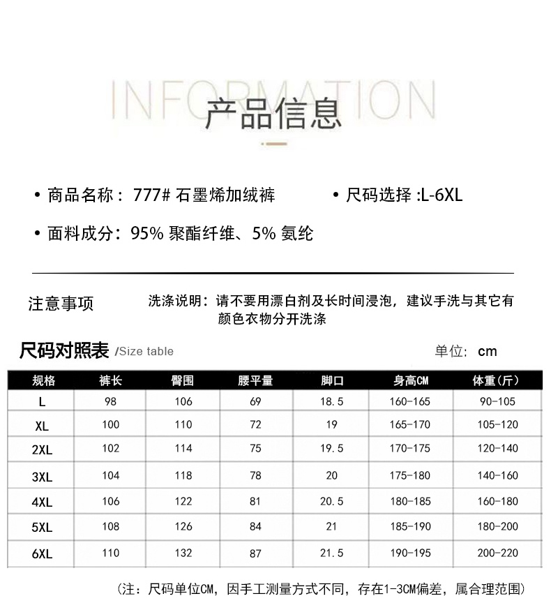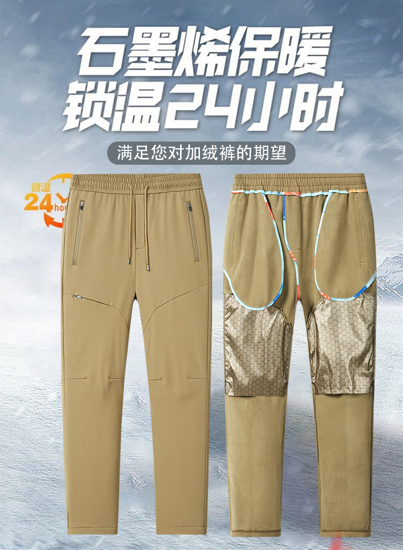 777石墨烯加绒裤 95聚酯纤维5氨纶 里料100聚酯纤维 驼/卡其/军绿/黑+ 姜黄/军绿/黑/卡其 L-6XL
