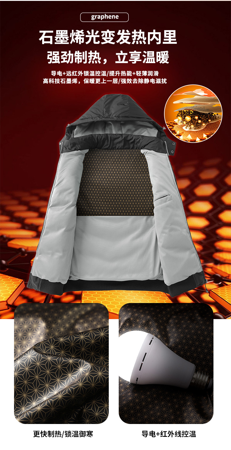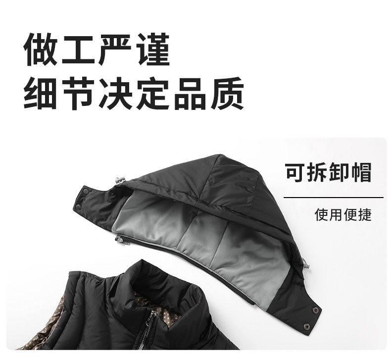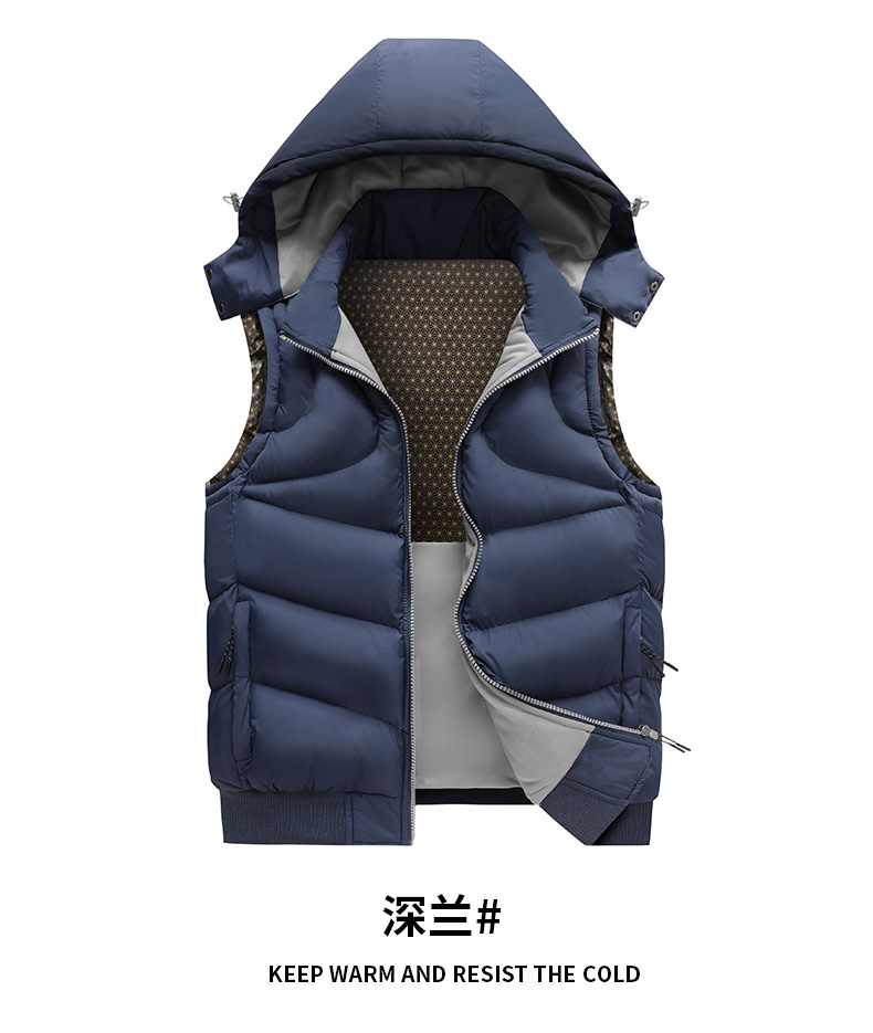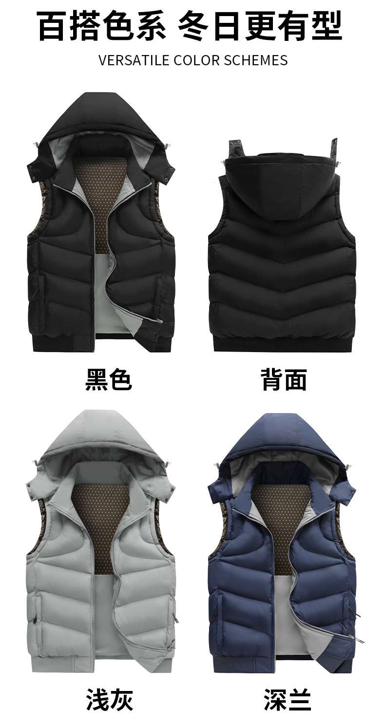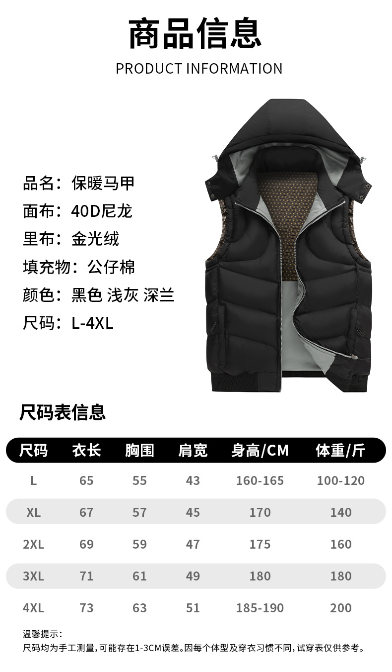 91789石墨烯连帽马甲 40D尼龙 里布 金光绒 填充物 公仔棉 黑色/浅灰/深蓝 L-4XL